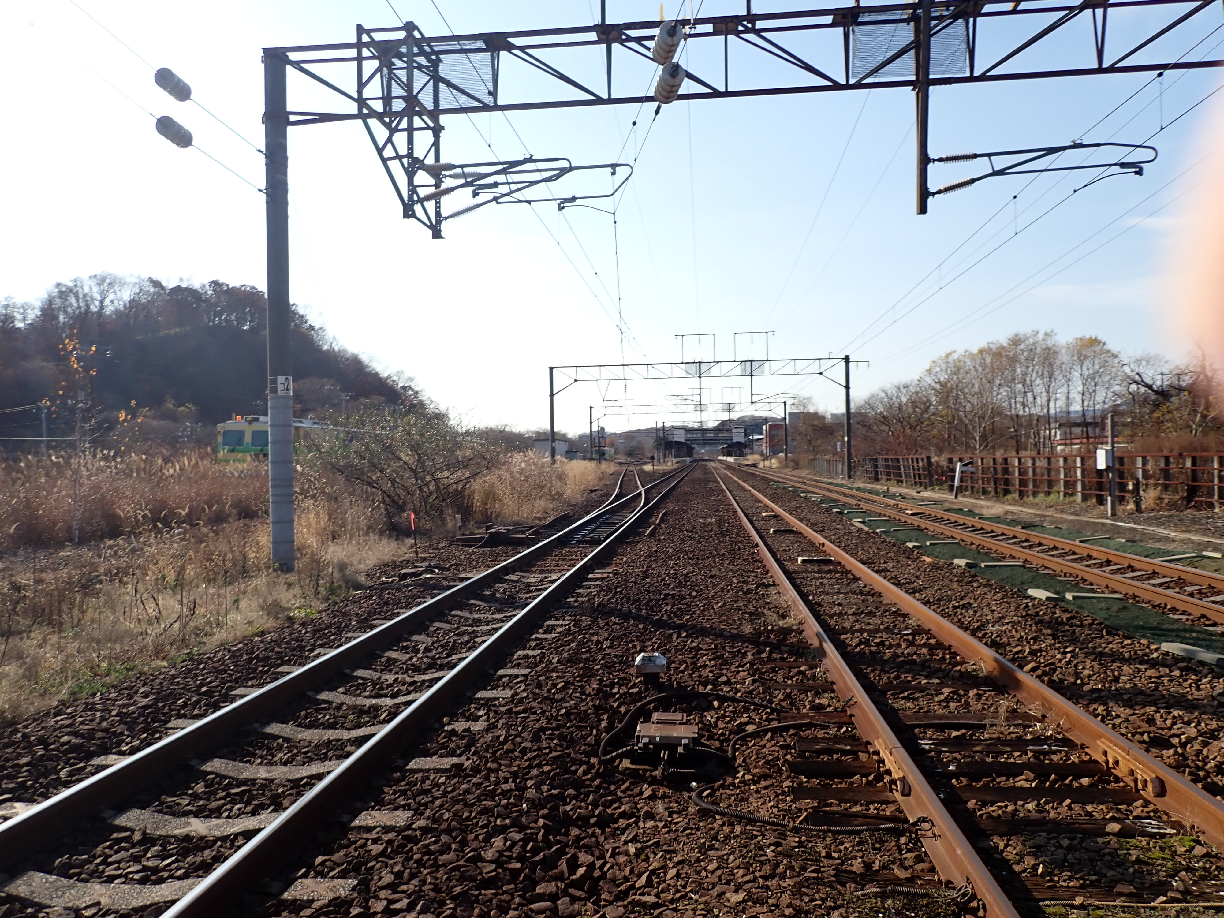 踏切を渡ります。
